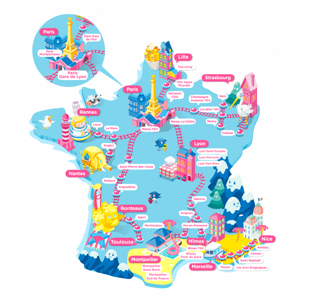 French TGV stations rail train map