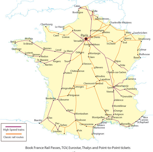 French TGV rail train map