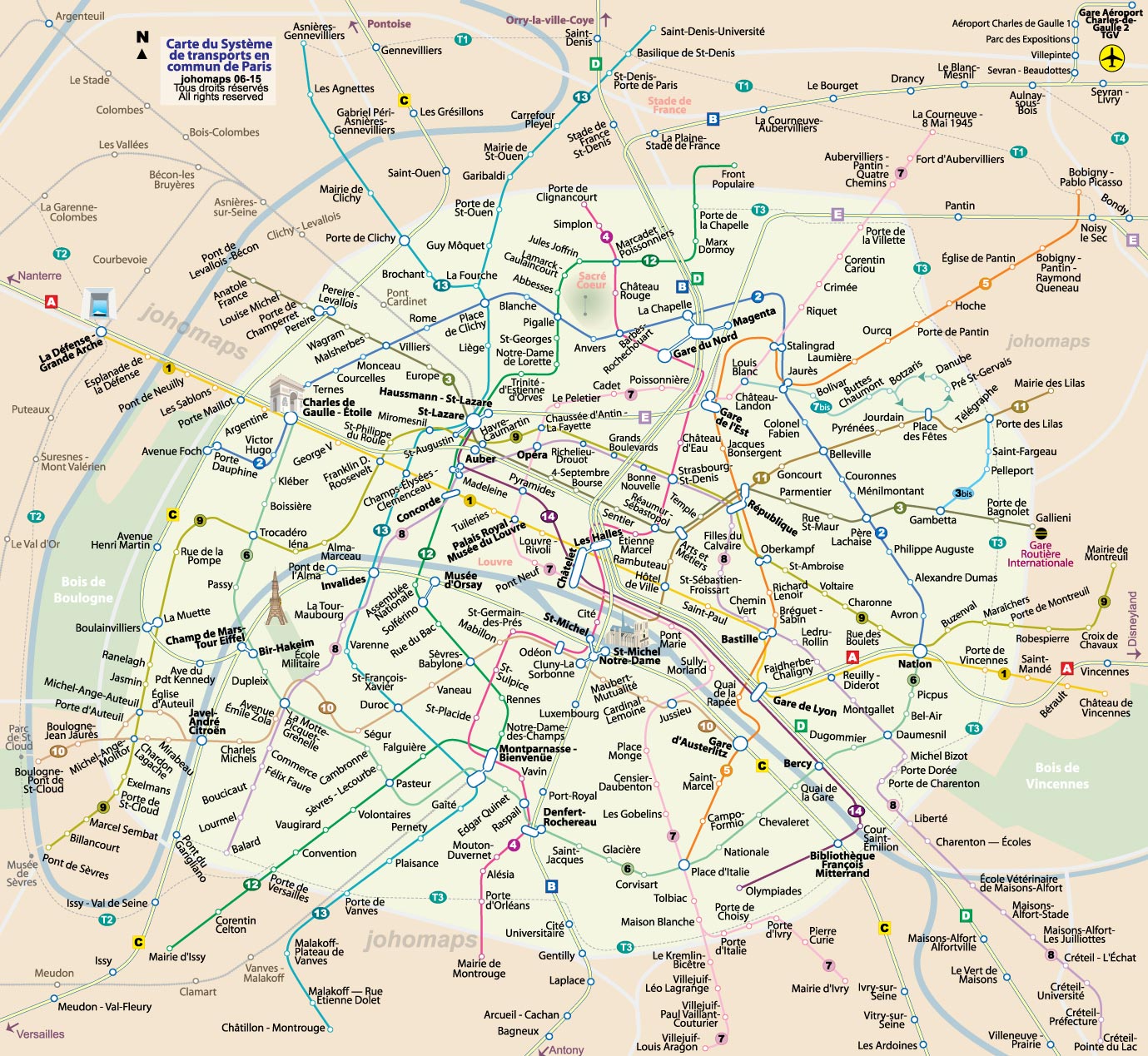 Paris Metro RER rail train map