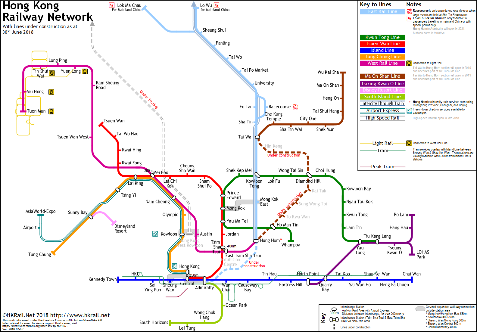 Hong Kong metro subway map HKRailNet-2018.07-E-F