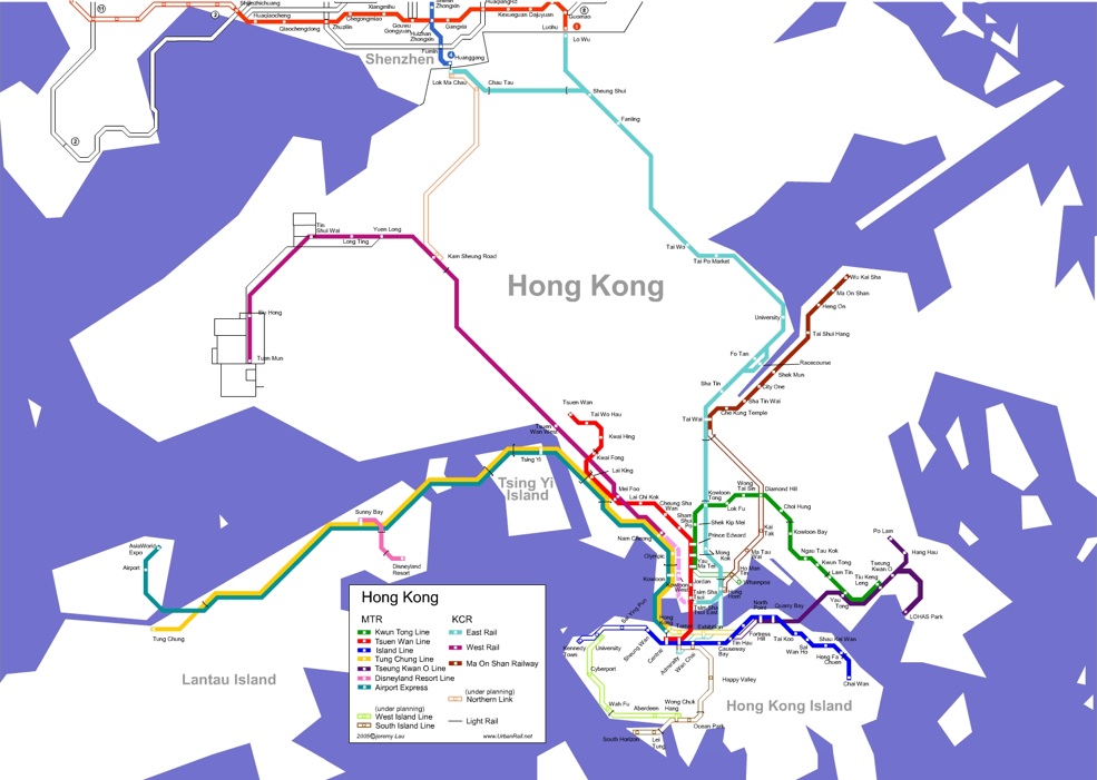 Hong Kong MTR  train / rail map Network outline   Hong Kong MTR  train / rail map