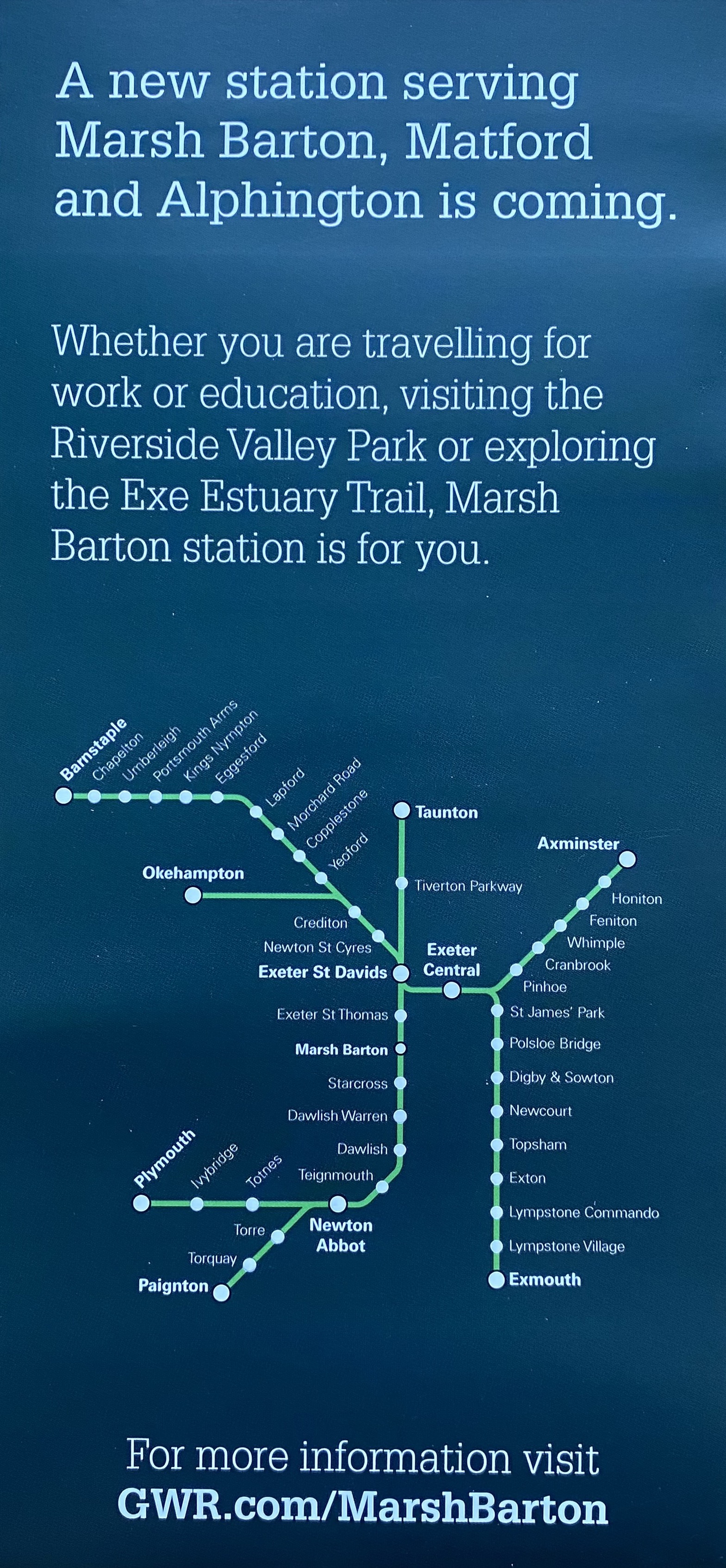 Stations The large station circle would seem to indicate important stations rather than interchange stations (as is generally the convention) and is used at the end of every line including bus routes. Buses have separate circles at interchange points except at Cardiff Airport and Oakhampton. Use of three point sizes enables small stations to be squeezed in but are not very readable unless the map is seen as a poster.
