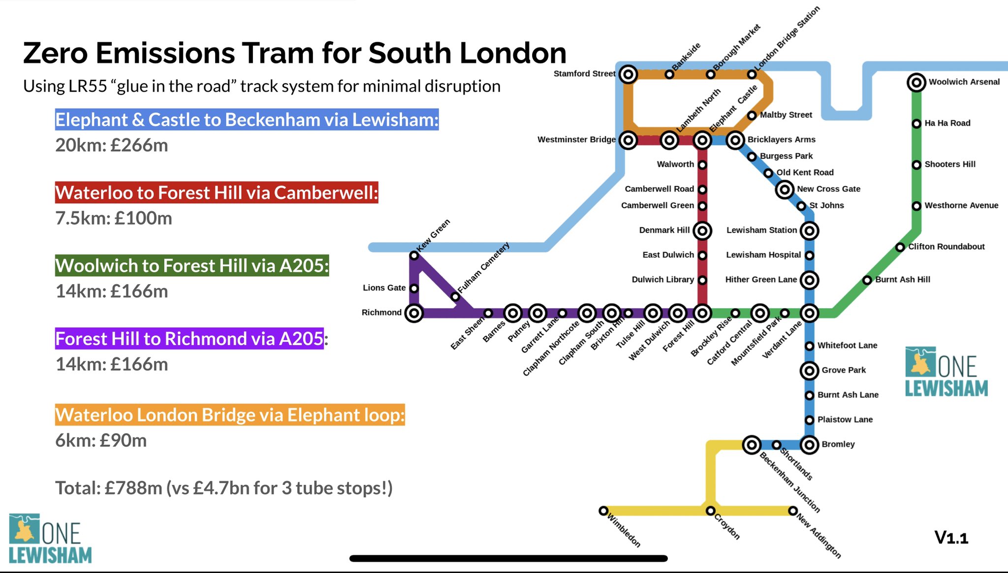 South London tram concept Lewisham South Lopndon tram proposal map