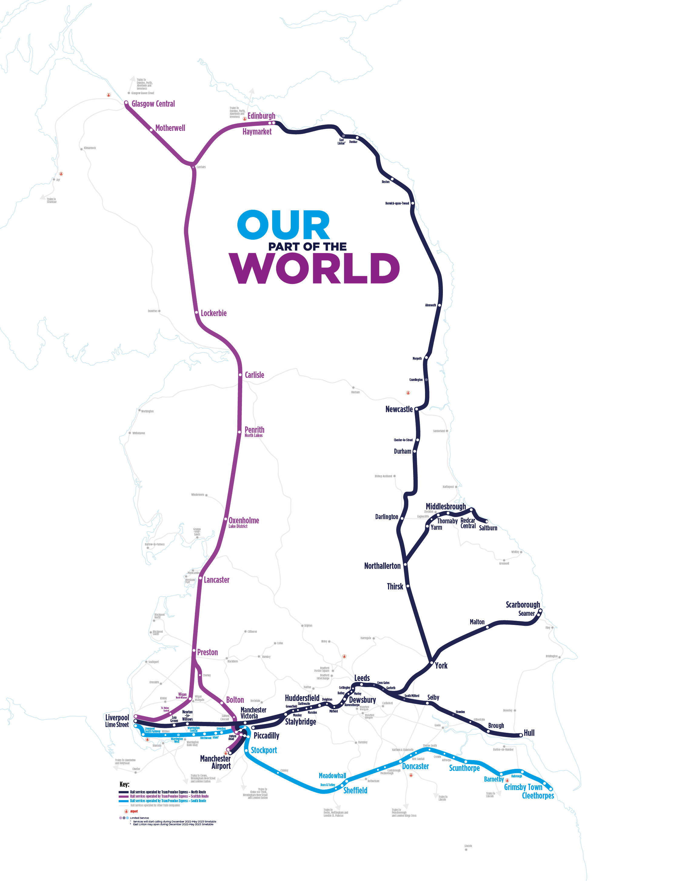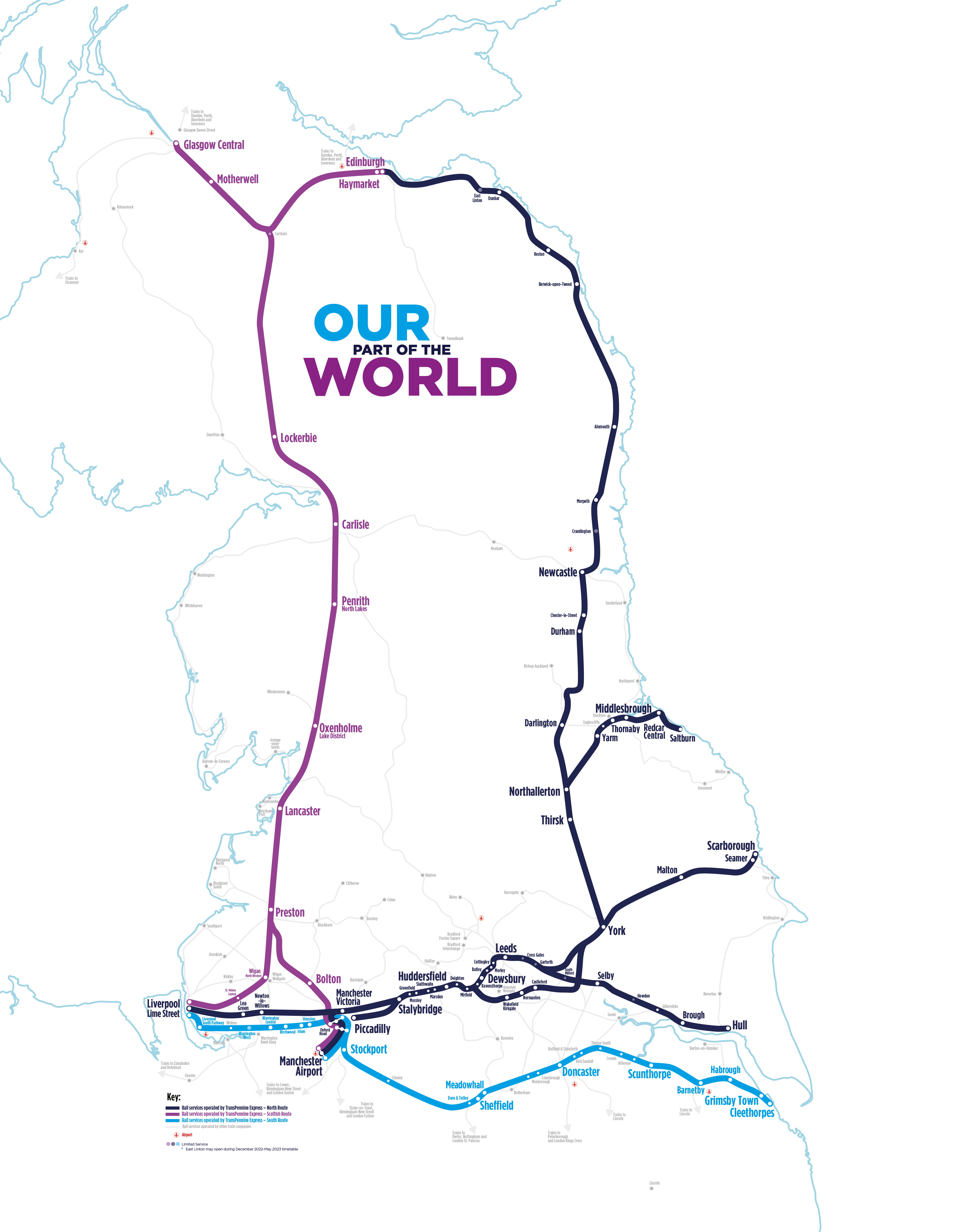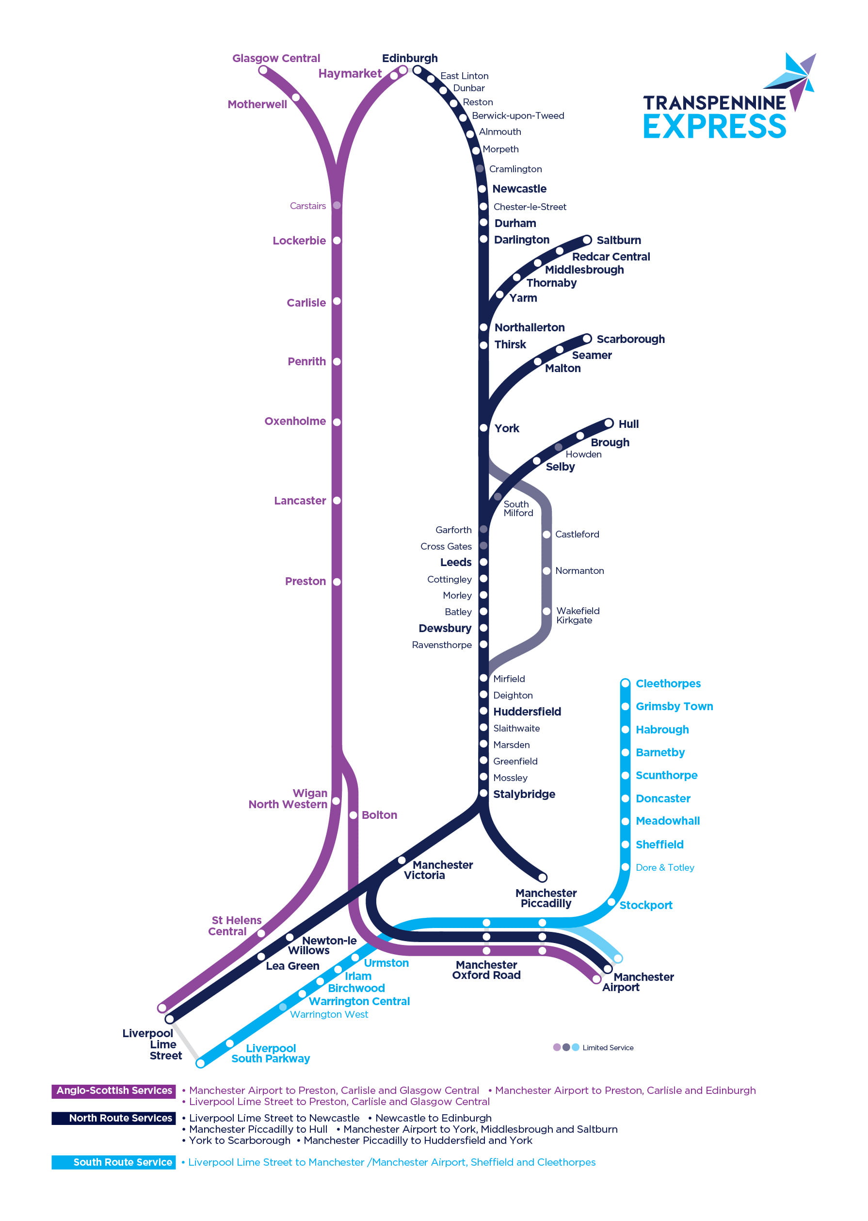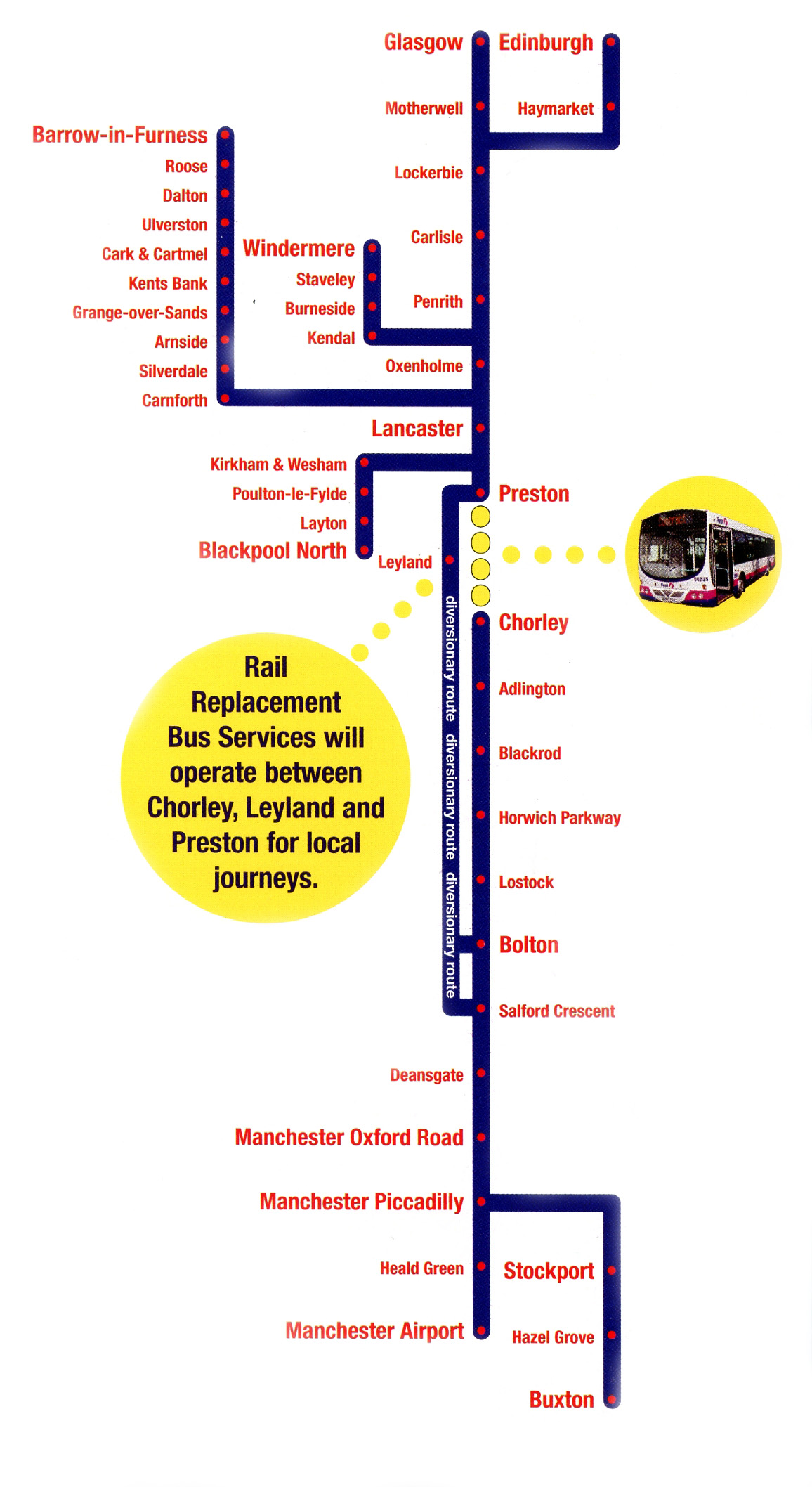 • Multiple station name font sizes that don't seem to relate to the stations importance (ie Wigan is smaller than Birchwood which is smaller than Seamer);